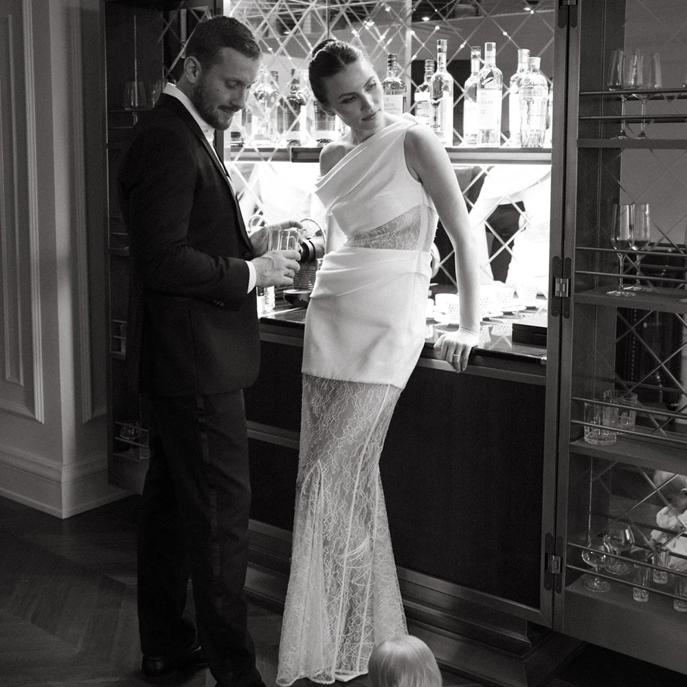 Set the stage for a romantic wedding day with the Robe Eponine. The elegant off shoulder design, ruched satin detailing and delicate lace patchwork enhance your feminine figure. A custom fit and see through fabric add a touch of allure. Make your special day even more magical with this stunning bridal gown.